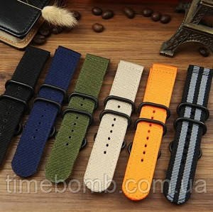 Тут є всілякі варіації аксесуарів, що дозволяють надійно утримувати годинник на зап'ясті, виконані з нейлону. Вони відмінно підходять як до жіночих моделей хронометрів, так і чоловічим. Разноформатная колірна гамма припускає наявність наступних варіацій: